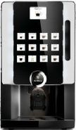 Das Modell Dopio ist das größte Table Top Modell. Er macht 12 Kaffee und Kakao Spezialitäten, hat einen Fixwasseranschluß und eine automatische Becherausgabe.
