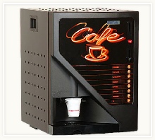 Das Modell IC ist ein schönes kleines Table Top Modell . Der Automat macht 10 Kaffee und Kakao Spezialitäten und hat