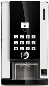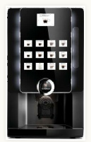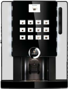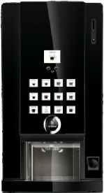 Das Modell Dopio ist das größte Table Top Modell. Er macht 12 Kaffee und Kakao Spezialitäten, hat einen Fixwasseranschluß und eine automatische Becherausgabe.
